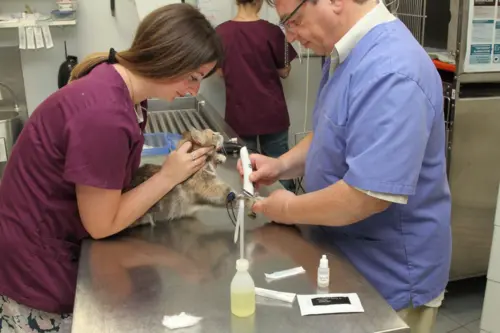 Les animaux hospitalisés bénéficient d’une surveillance accrue et de soins de nursing adaptés. Ainsi, il est possible de leur administrer les traitements en fonction de leur état (perfusions, transfusion sanguine, alimentation entérale assistée…), de suivre l’évolution ou de leur faire des soins particuliers (chimiothérapie anticancéreuse par exemple, pour laquelle le Dr Blanckaert est agréé).